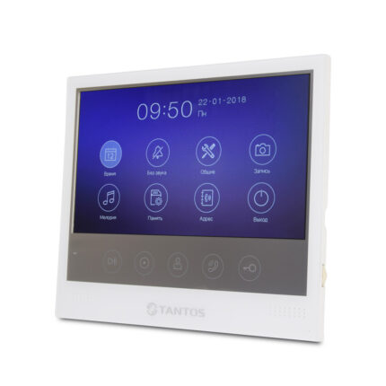 Кольоровий домофон з TFT екраном 4 дюйми і сенсорними кнопками керування, підключення 2 панелей виклику, 2 відеокамер, 2 датчиків тривоги і 1 додаткового монітора (телевізора). Розмова по гучному зв'язку, є інтерком на 3 відеодомофони. З'єднання з панеллю виклику 4-дротове. Слот microSD до 32 Гб, живлення 100-240V, споживання 600mA, в режимі очікування 250mA. Корпус білого кольору.