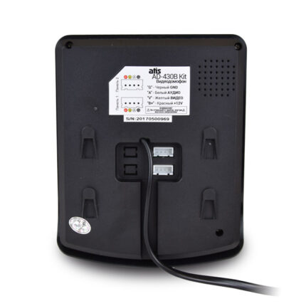 Кольоровий домофон з TFT екраном 4.3 дюймів і сенсорними кнопками керування, підключення 2 панелей виклику або 1 панелі і 1 відеокамери. Розмова по гучному зв'язку. З'єднання з панеллю виклику 4-дротове. Живлення 100-240V, споживання 6Вт, в режимі очікування 1Вт. Корпус чорного кольору. Розміри 119×175×21мм.