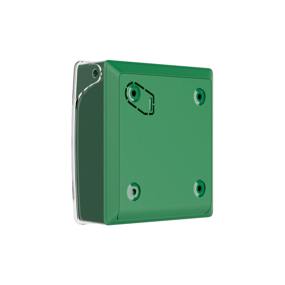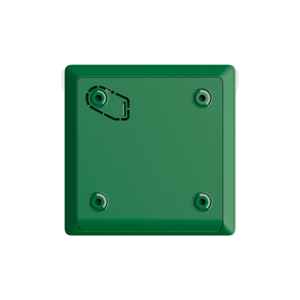 ManualCallPoint (Green) Jeweller – бездротова програмована кнопка для активації тривоги або сценаріїв автоматизації. На відміну від червоної версії, не налаштована за замовчуванням як «Кнопка пожежної тривоги» і потребує ручного налаштування. Використовує захищений радіопротокол Jeweller із дальністю зв’язку до 1700 м. Оснащена поновлюваним гнучким елементом і механізмом скидання за допомогою спеціального ключа. Підтримує кілька режимів роботи, включно з тривожною кнопкою, сигналізацією витоку газу та активатором сценаріїв. Світлодіодна індикація відображає стан тривоги і несправності. Передбачено захист від випадкових натискань із можливістю встановлення прозорої кришки. Працює від двох батарей CR123A з автономністю до 7 років. Пристрій призначений для встановлення всередині приміщень, оптимальна висота монтажу – 1,4 м.