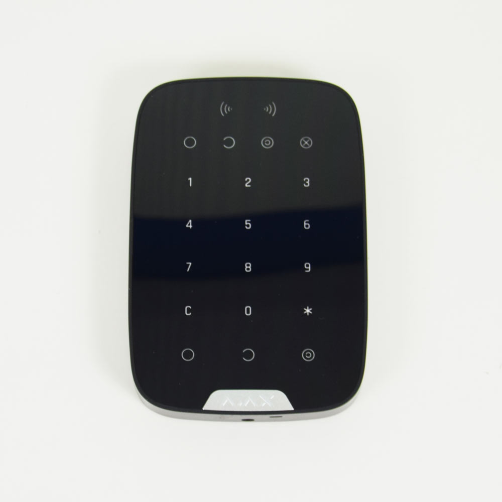 Бездротова сенсорна клавіатура з підтримкою захищених безконтактних карт Pass і брелоків Tag для керування охоронною системою Ajax. Вмикання режиму охорони за допомогою карти Pass чи брелоку Tag, натисканням однією кнопкою або введенням цифрового коду . Дальність зв’язку до 1700 м (відкритий простір), 868МГц. Колір: чорний. Розміри: 165х113х20мм