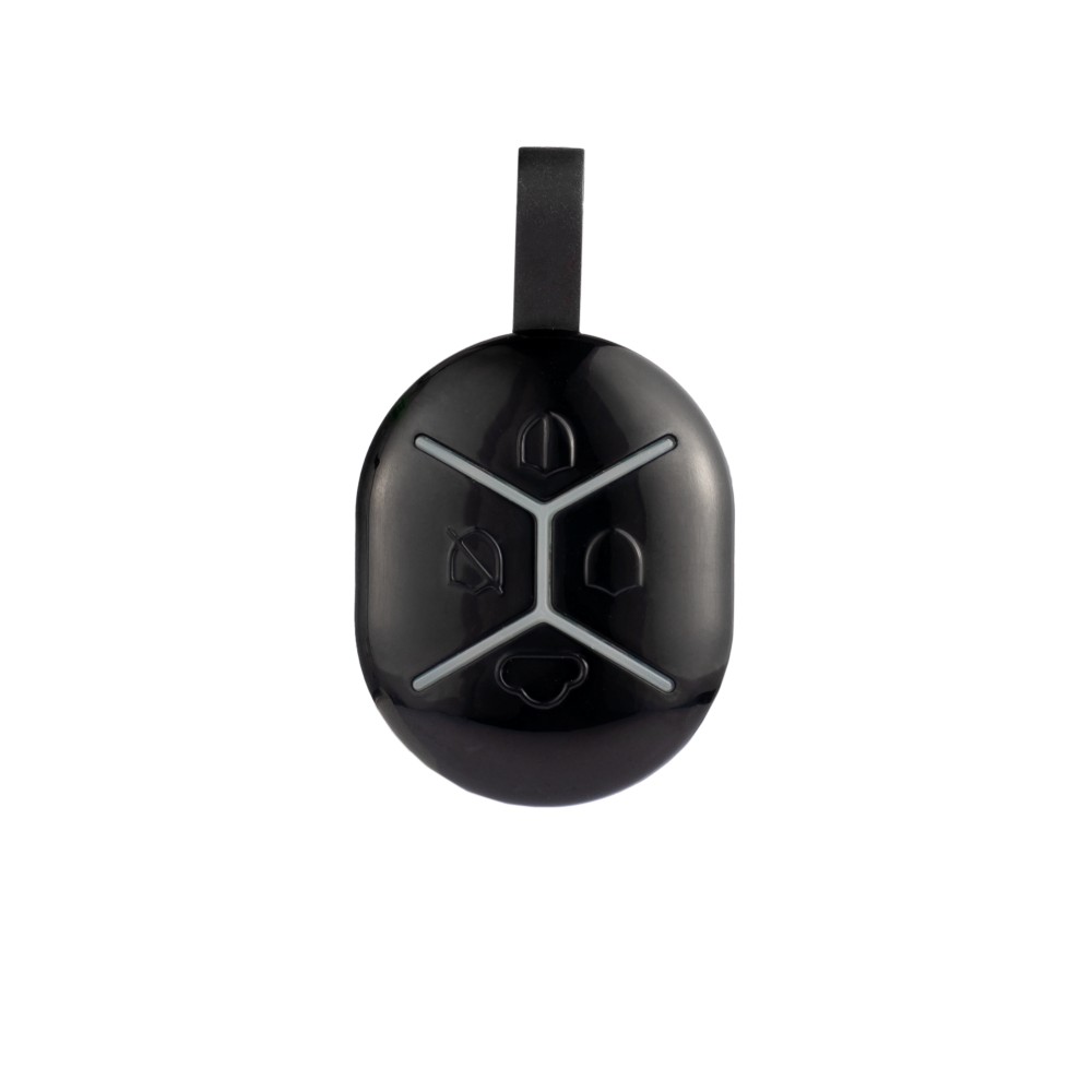 Брелок для керування системою охорони. 4 кнопки керування. Одна програмована кнопка. Радіозв’язок 868 МГц, дальність роботи 800 м, захищена двостороння комунікація, ключ шифрування 256 біт. Світлова індикація. Літієва батарея CR2032 у комплекті, термін служби до 5 років. Робоча температура: -10~+55°C. Розміри: 39х9х57 мм. Вага: 40 г. Колір: чорний або білий