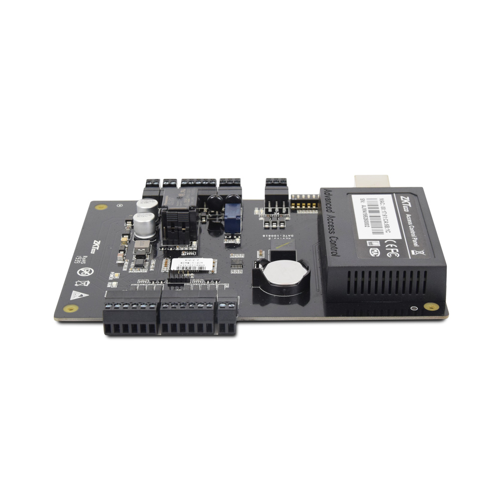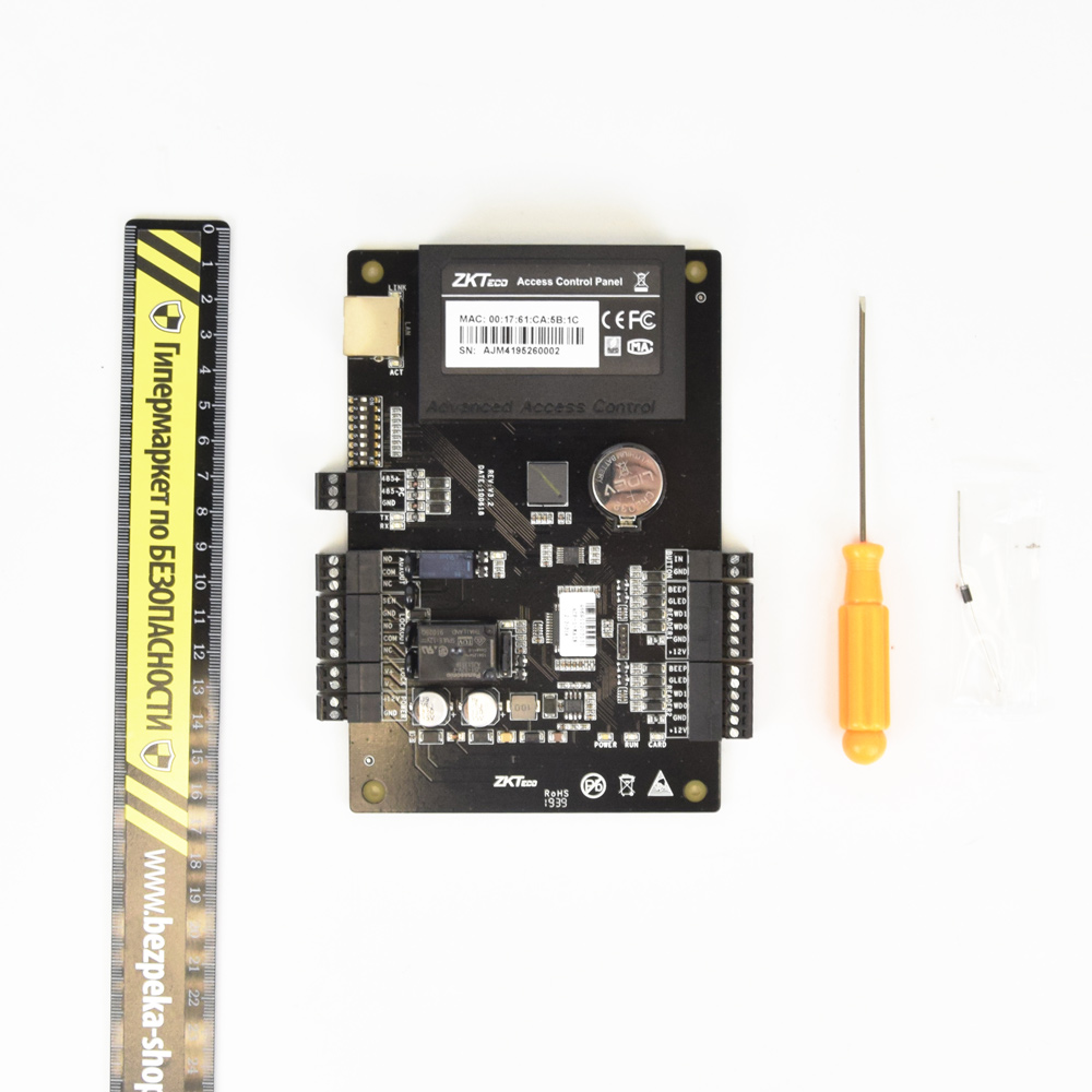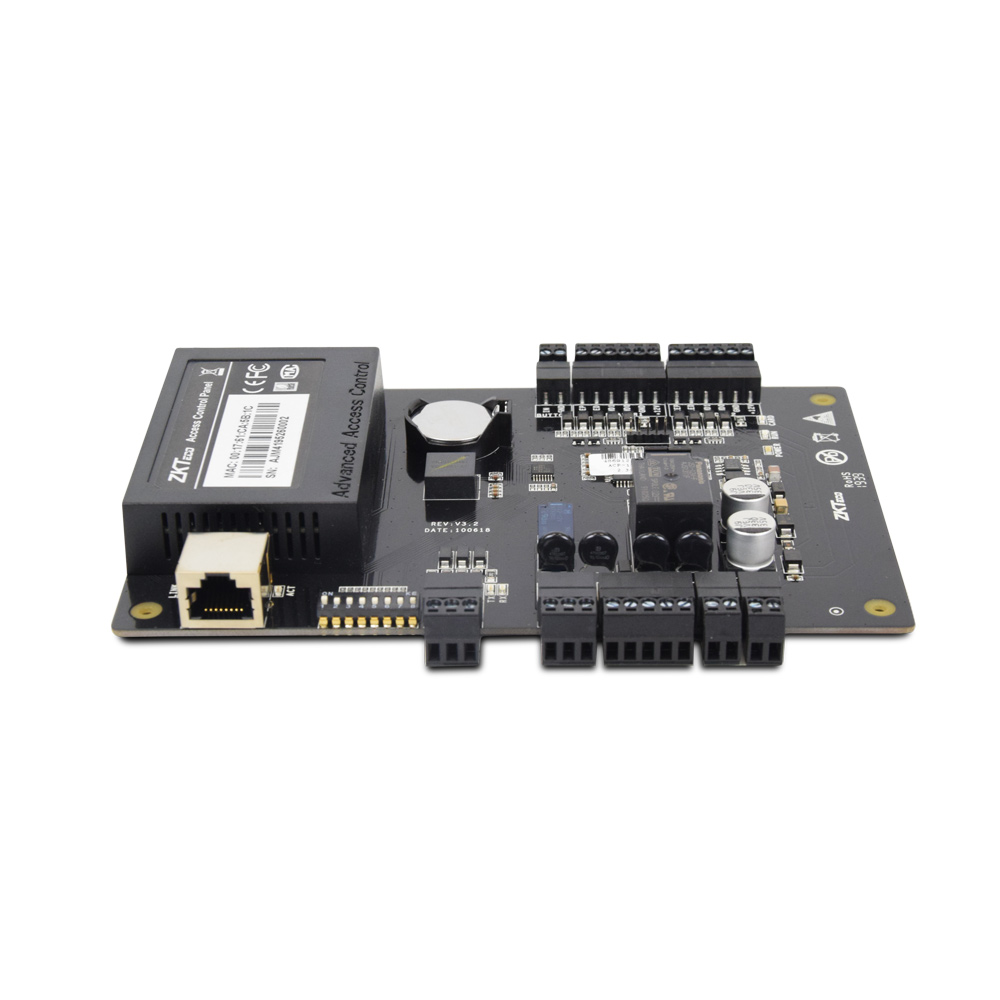 Мережевий контролер на 1 двері. Пам’ять 30 000 RFID карт, 100 000 записів журналу подій. 2 зчитувача, входи: 1 кнопка, 1 геркон, виходи: 1 реле для замка, 1 доп. реле для AUX виходу. Інтерфейси – RS485, Ethernet. Розміри 160х106 мм.