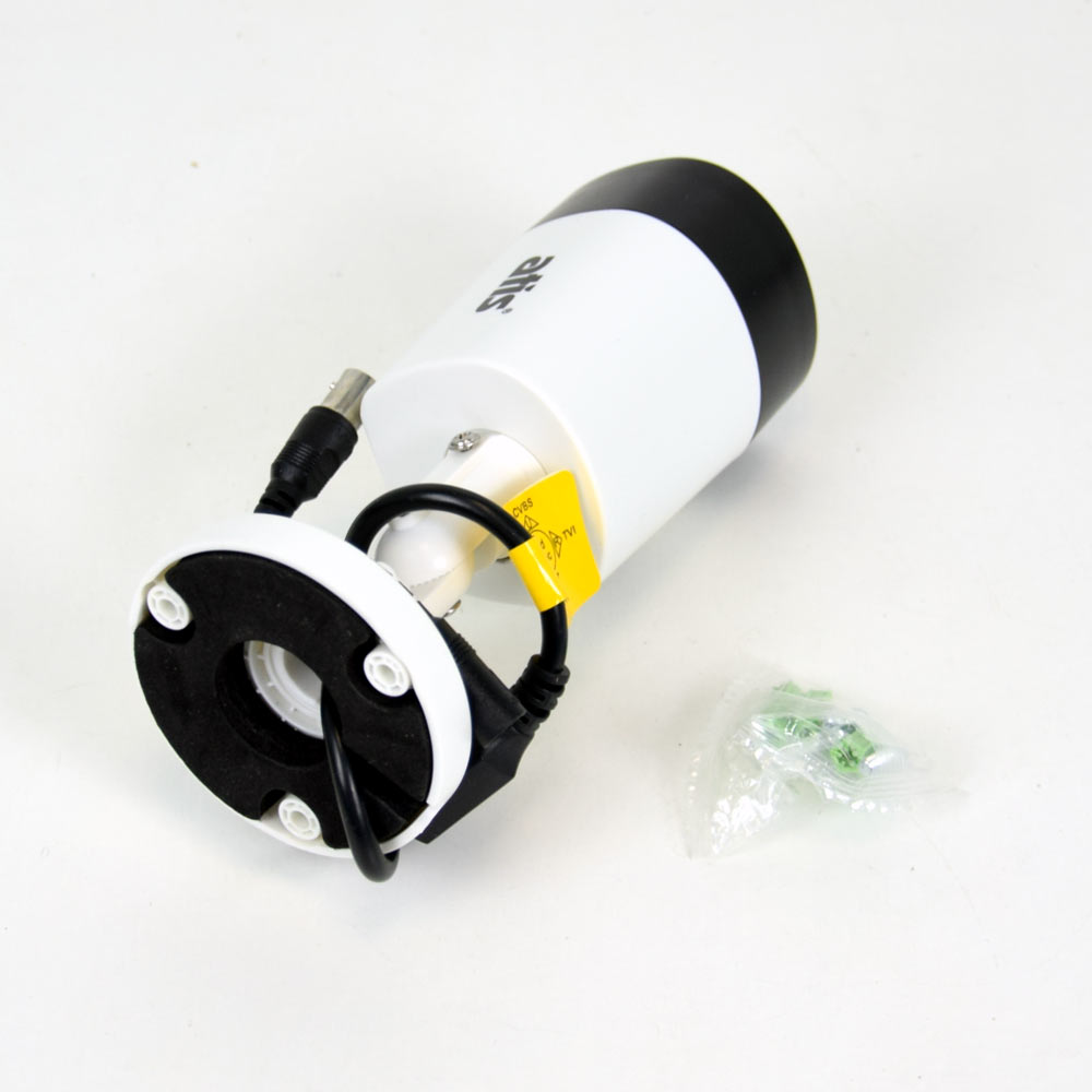 Корпус циліндричної камери ATIS AMW-5MIR-20W/3,6PIR виготовлений із металу. Клас захисту IP66 (система класифікації ступеня захисту оболонки електрообладнання), що означає надійний захист внутрішніх компонентів від потрапляння пилу, а також стійкість до перепадів температур (-30°C ~ +60°C).