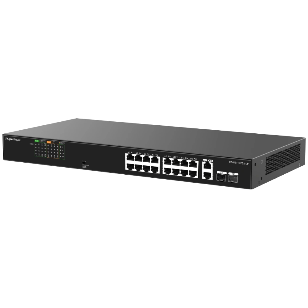 Некерований PoE-комутатор Ruijie Reyee RG-ES118FGS-LP 2 Combo гігабітні з 16 портами PoE