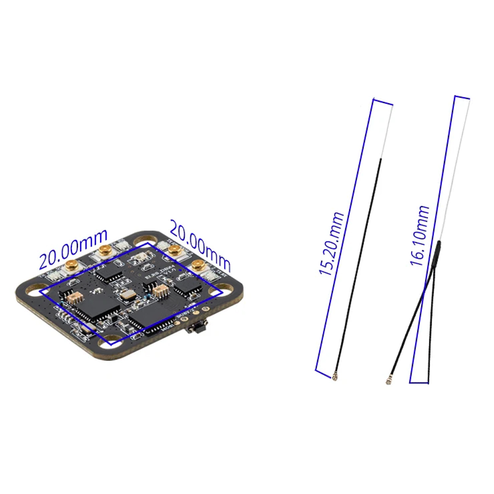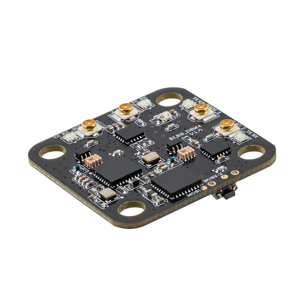 Встановлена прошивка ExpressLRS v3.3.2 підтримує частоту оновлення до 500Hz з перспективою розширення до 1000Hz в нових версіях. Приймач працює на базі мікроконтролера ESP32 і RF-чіпів Semtech LR1121, підтримує інтерфейс CRSF. Завдяки компактним розмірам і монтажним отворам 20×20мм пристрій легко інтегрується в різні конструкції.