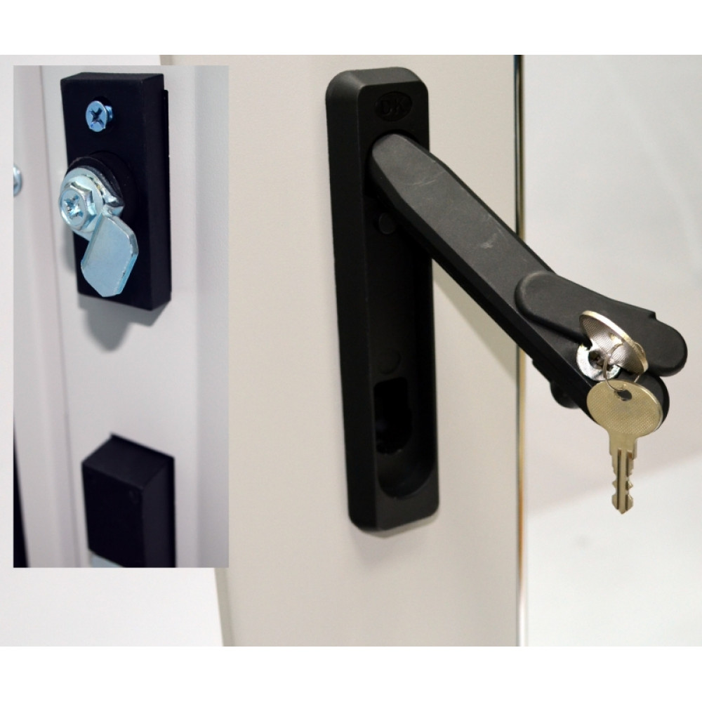 – Двері передні: з каленим склом і замком з поворотною ручкою