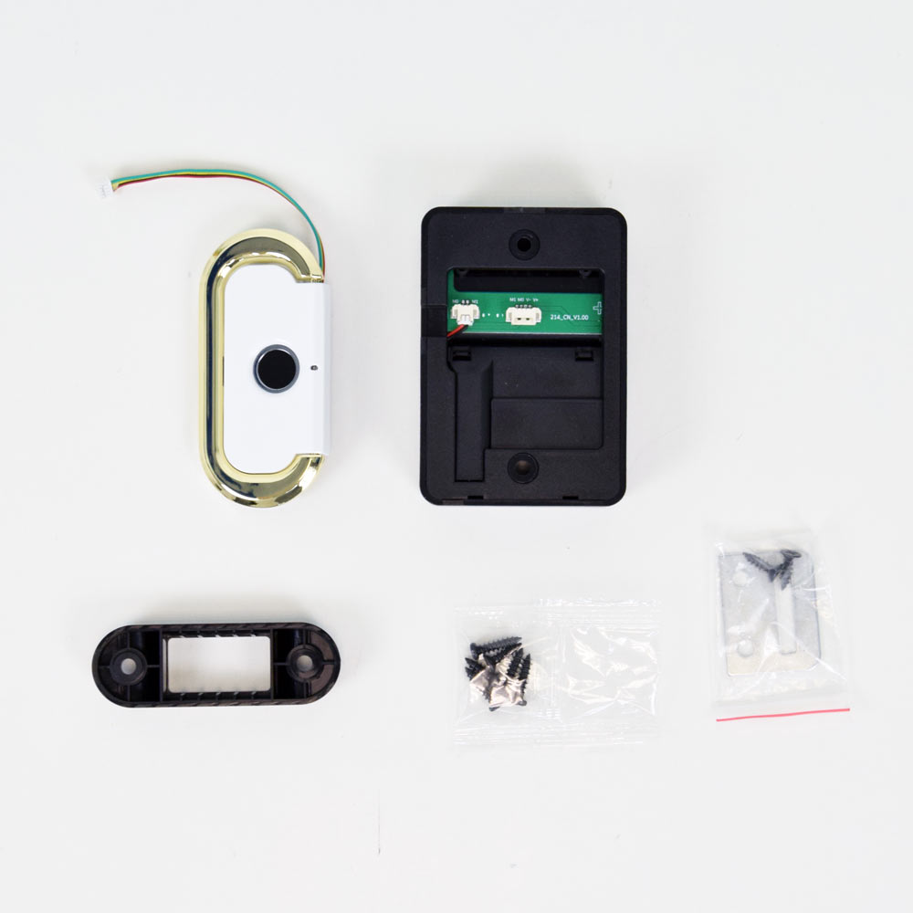 Замикаючий механізм кріпиться всередині корпусу меблів, зовнішній блок зі сканером відбитків пальців – зовні. З’єднання здійснюється шлейфом. Монтаж не вимагає складних інструментів та може бути виконаний самостійно. Усі необхідні елементи входять до комплекту.