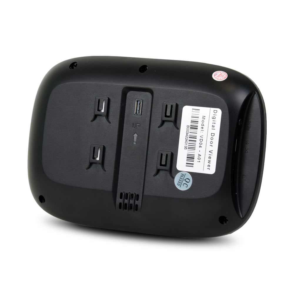 Роздільна здатність зображення:1 Мп. Екран: 4.3″. Кут огляду: по горизонталі 120°, по діагоналі 170°. Відстань виявлення руху: 1-3 м. Розмір дверного отвору: 14-28 мм. Товщина дверей: 35-120 мм. Вбудований акумулятор:2400 мАч. Сертифікати: CE, FCC, RoHS. Робоча температура: -20 ~ +55°C. Розмір зовнішньої камери: 61.5 x 61.5 x 13.5 мм. Розмір внутрішнього екрану: 146 x 97 x 20 мм