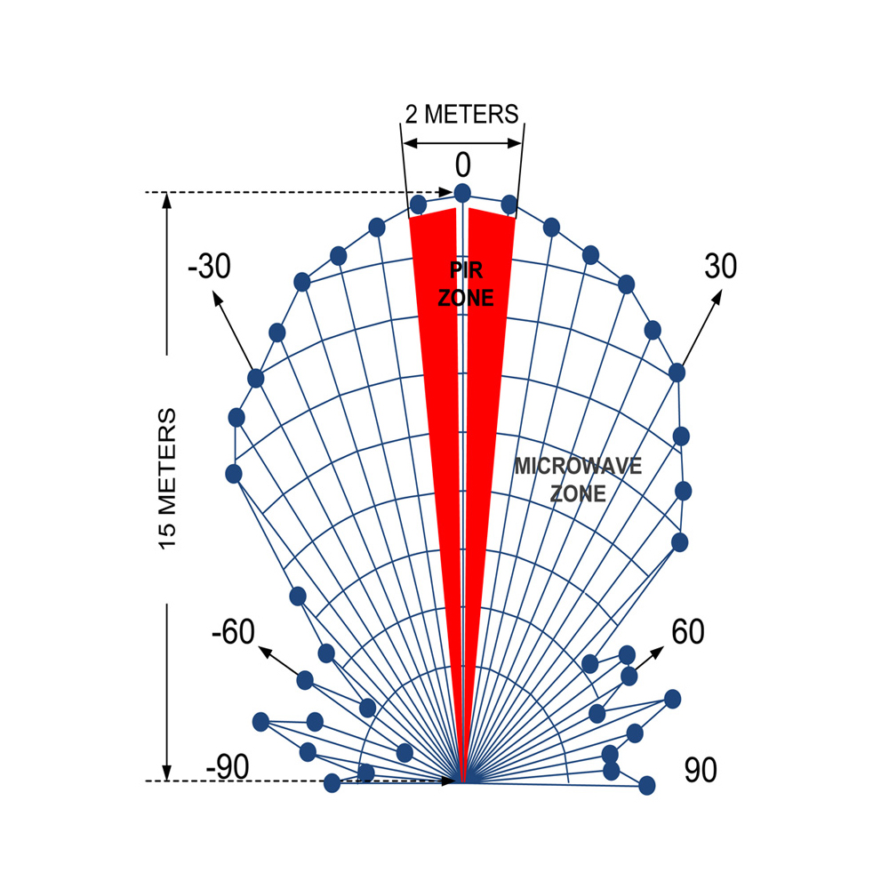 Подвійна технологія PIR + НВЧ: Забезпечує стабільне і точне виявлення, зводить до мінімуму помилкові спрацьовування і зменшує кількість виїздів на перевірку.