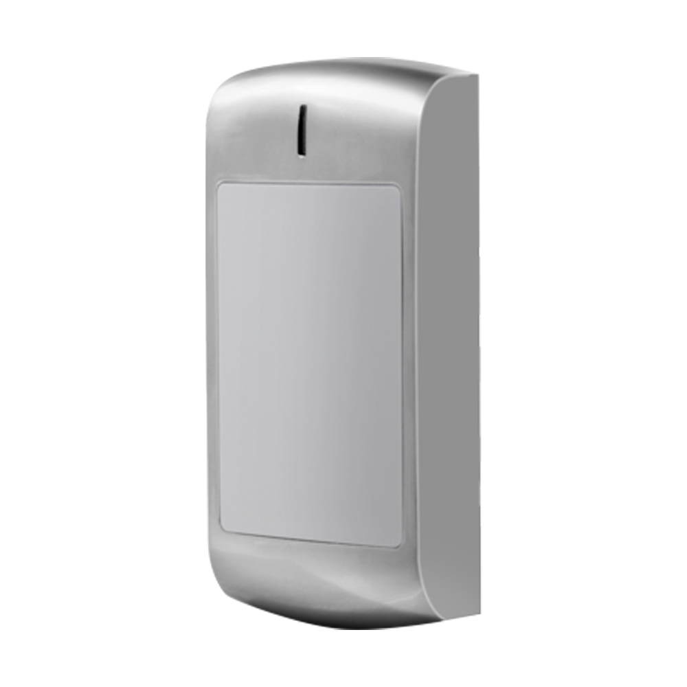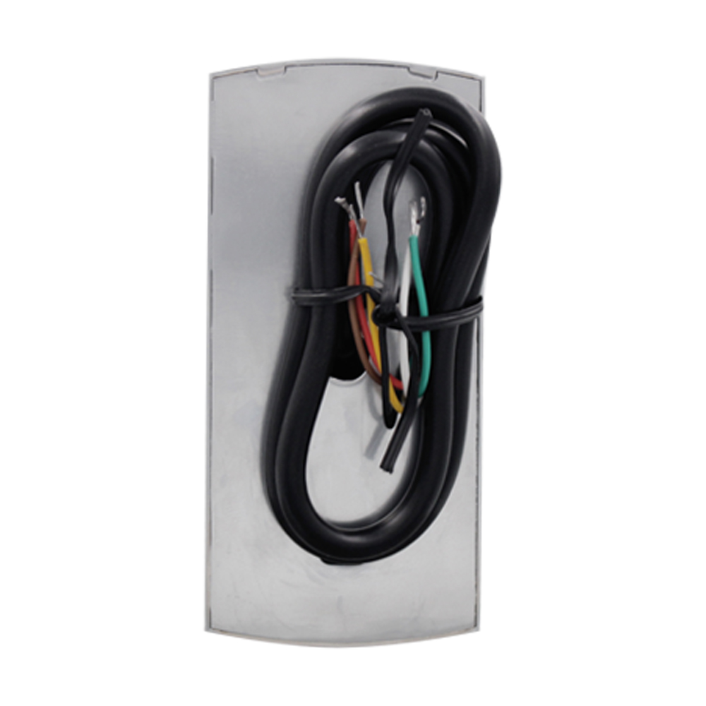 Тип ідентифікації: RFID карта. Тип RFID карт: Em-Marine 125 кГц, Mifare 13.56 МГц. Відстань зчитування: 2-6 см. Вихідні порти: Wiegand 26-bit або 34-bit (налаштовується). Робоча напруга: DC 9-24 В, 50 мA. Робоча температура: -40°C ~ +65°C. Металевий корпус