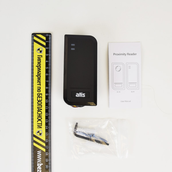 Зчитувач карт і брелоків стандарту Mifare 13.56МГц; Wiegand-26; Дальність зчитування 7см; Харчування 9-18В; Споживання 35мА; IP66; Температура -10 до +60; Розміри 103х48х19. Колір чорний
