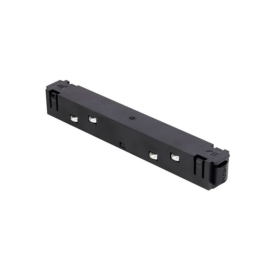 Прямий з’єднувач LW-TRACK-I-CONNECTOR вставляється всередину магнітного треку, з’єднуючи струмопровідні шини двох ділянок, що забезпечує безперервне живлення по всій довжині системи. Внутрішні контактні пластини взаємодіють з мідними шинами магнітного треку, забезпечуючи живлення. Фіксатори з боків корпусу замикаються в пазах треку, запобігаючи зсуву з’єднувача.